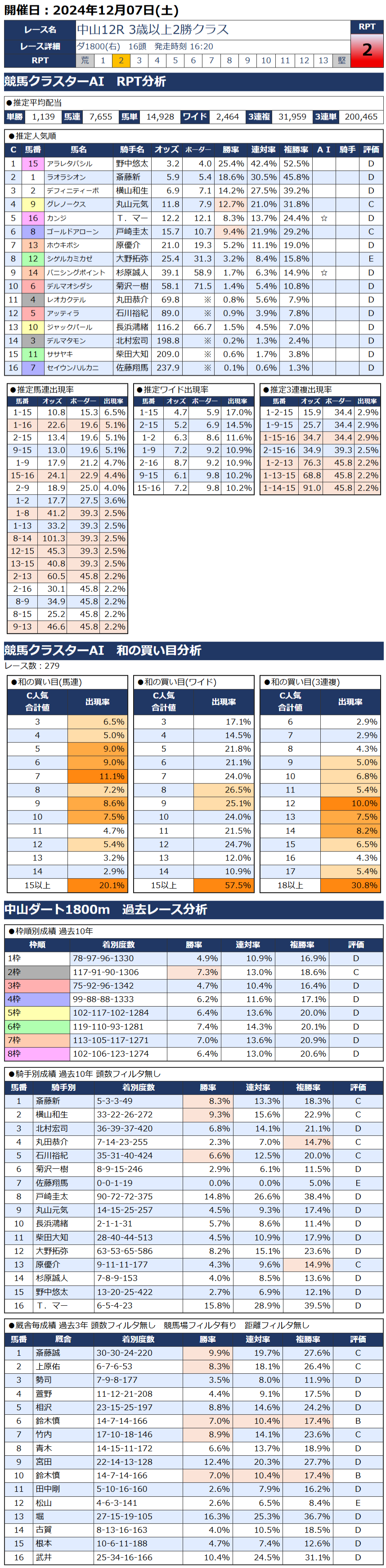 本日の無料・有料AI予想 レース情報
