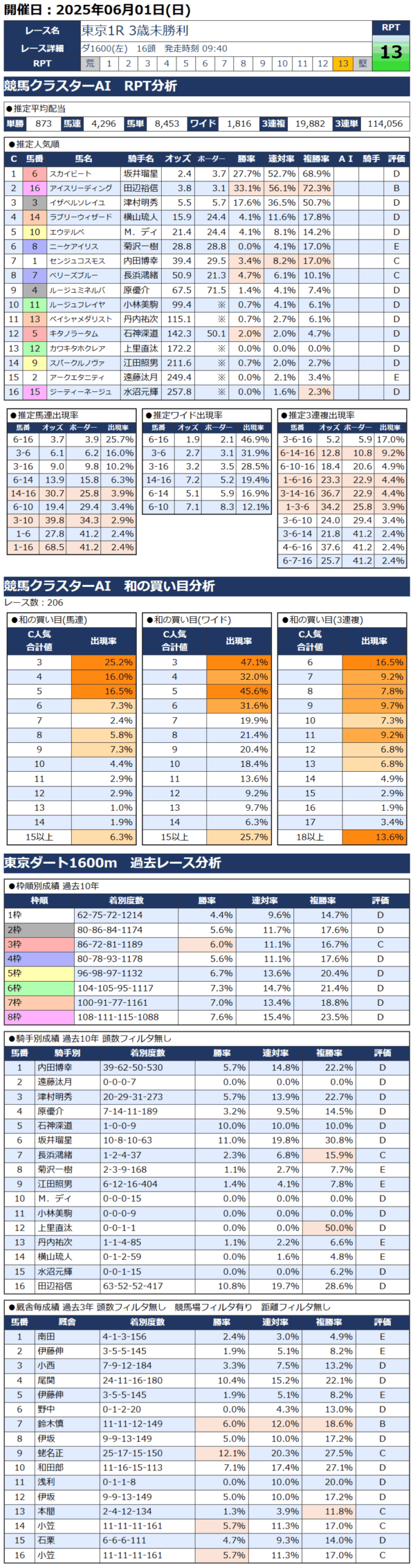 本日の無料・有料AI予想 レース情報
