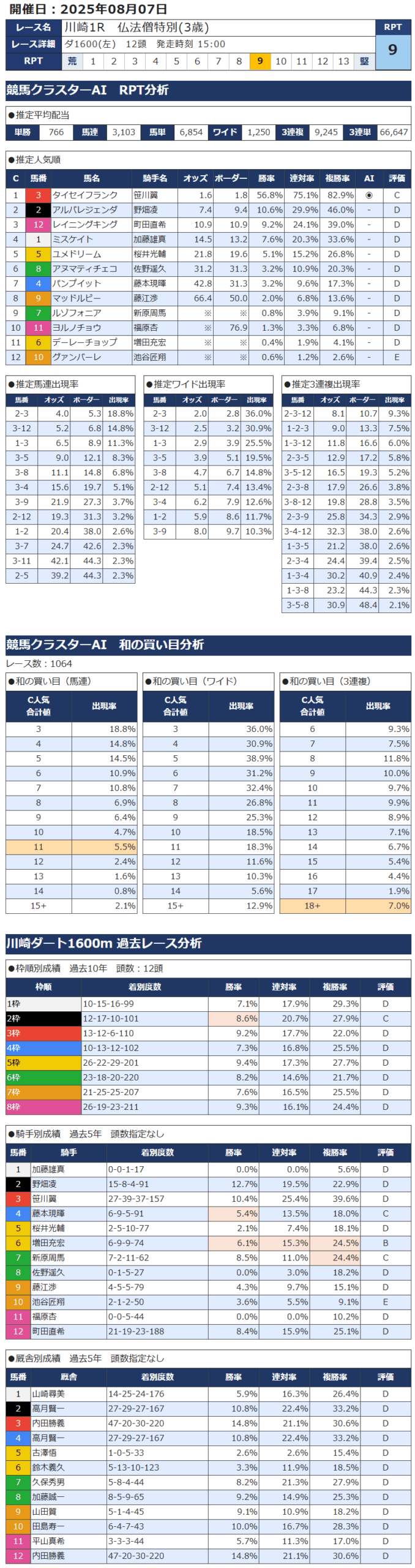 本日の無料・有料AI予想 レース情報