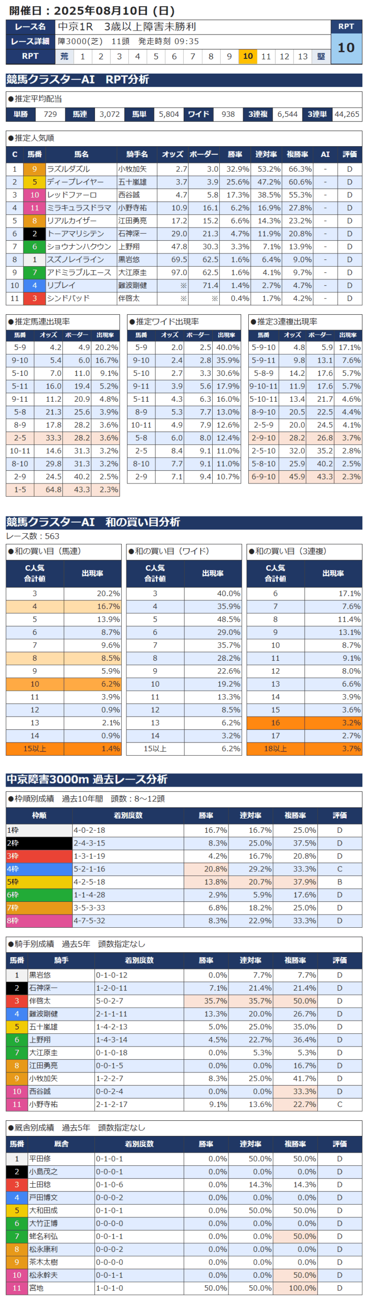 本日の無料・有料AI予想 レース情報