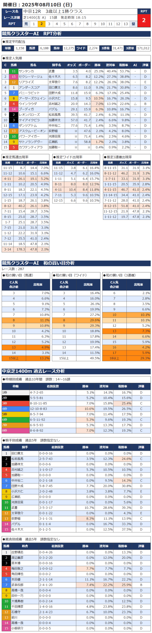 8月10日 中央競馬 中京