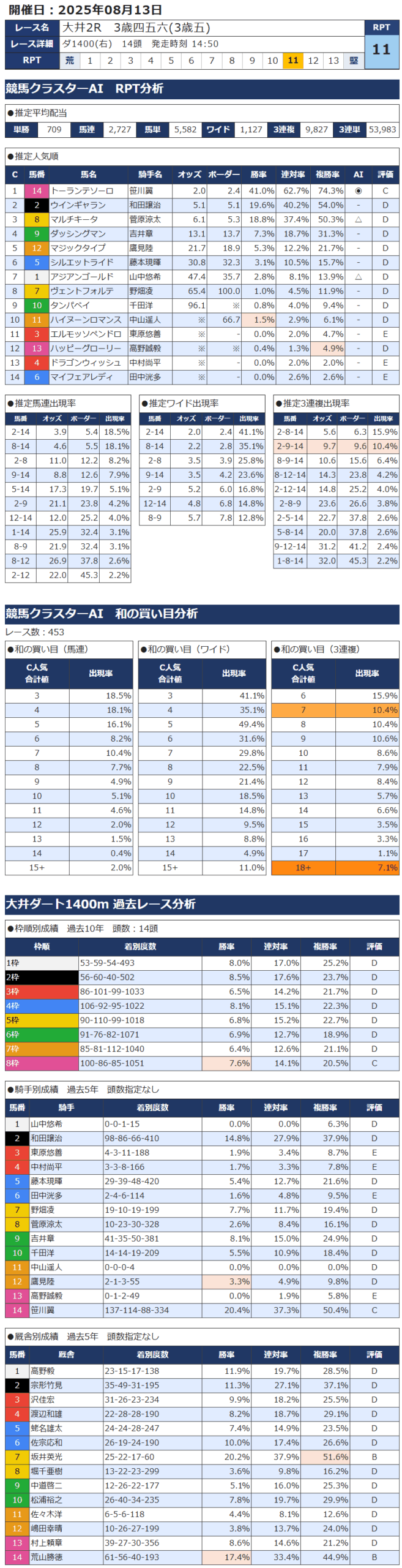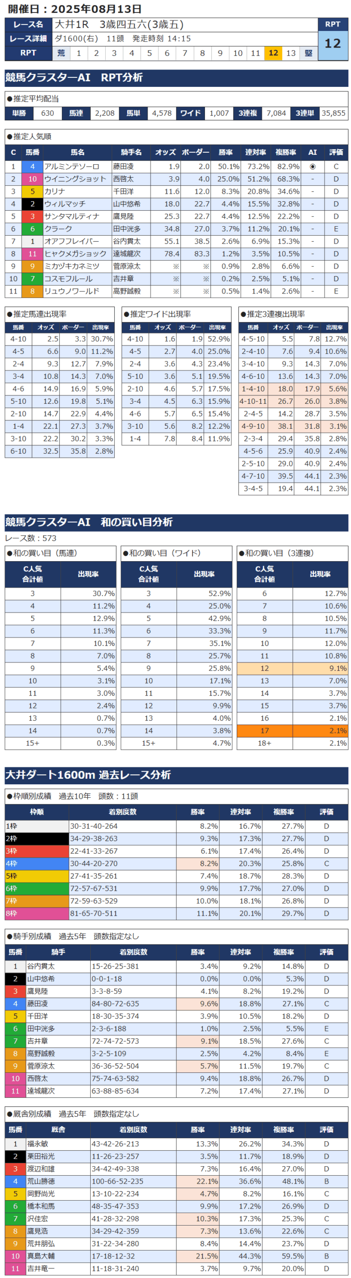 8月13日 南関競馬 大井