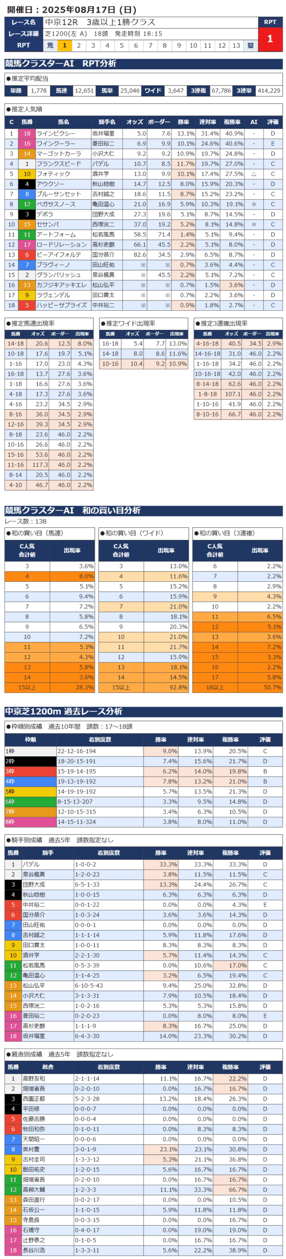 本日の無料・有料AI予想 レース情報