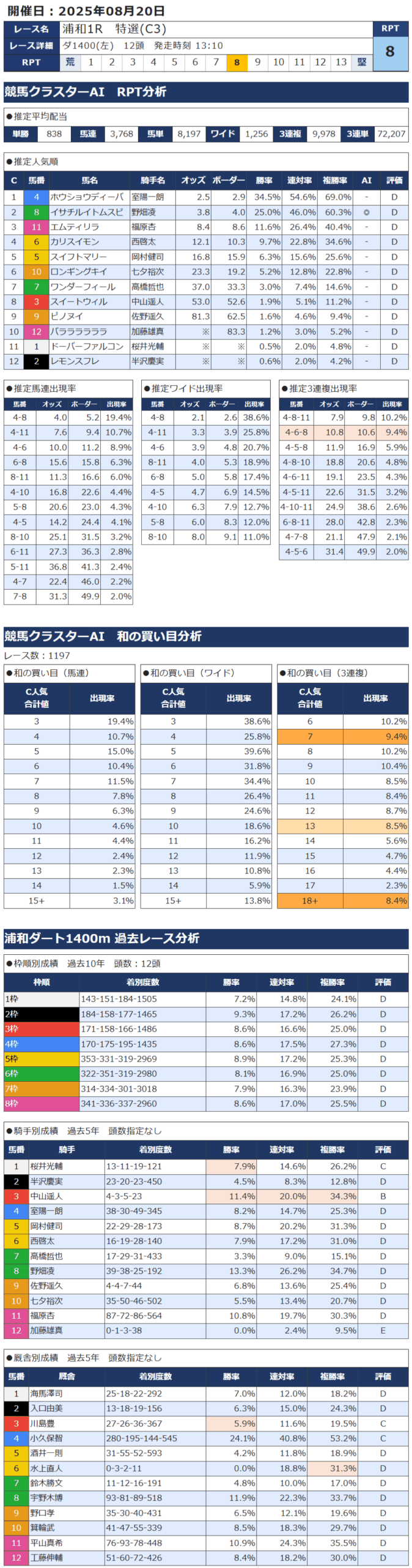 8月20日 南関競馬 浦和