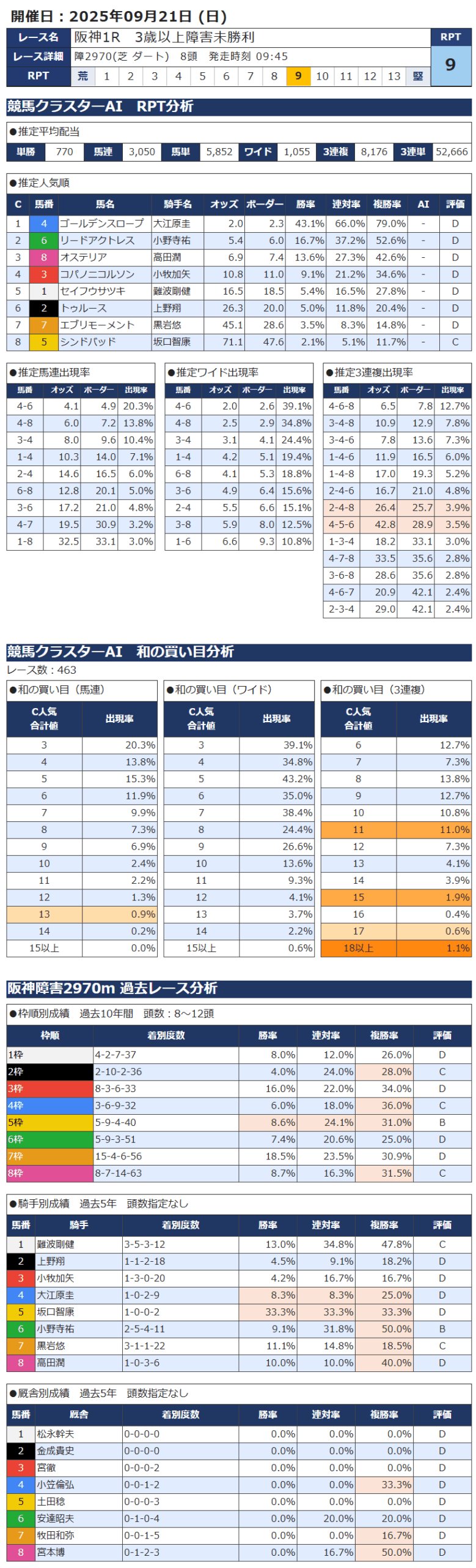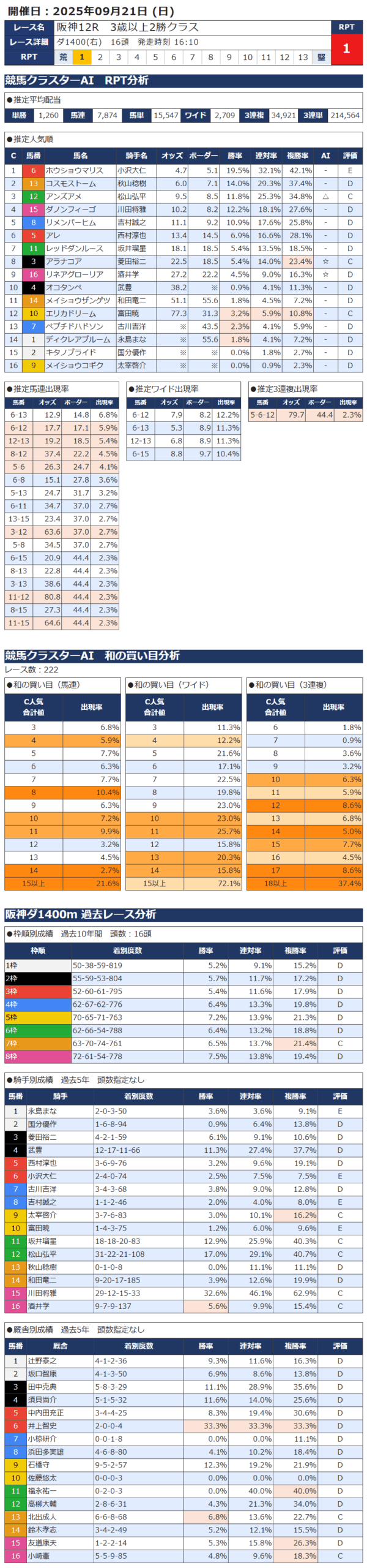 本日の無料・有料AI予想 レース情報