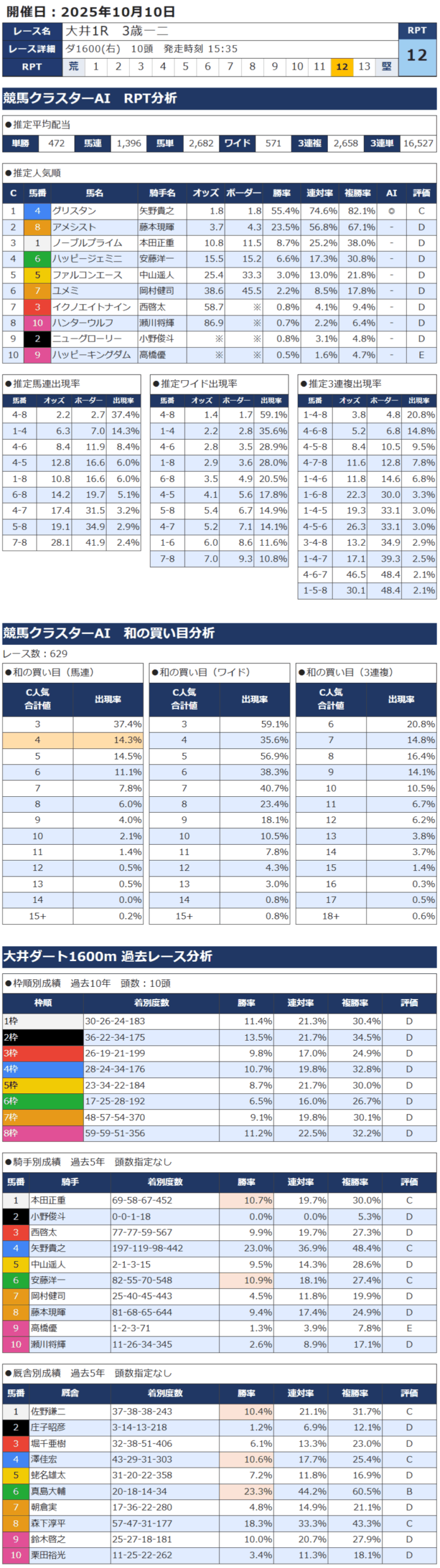本日の無料・有料AI予想 レース情報