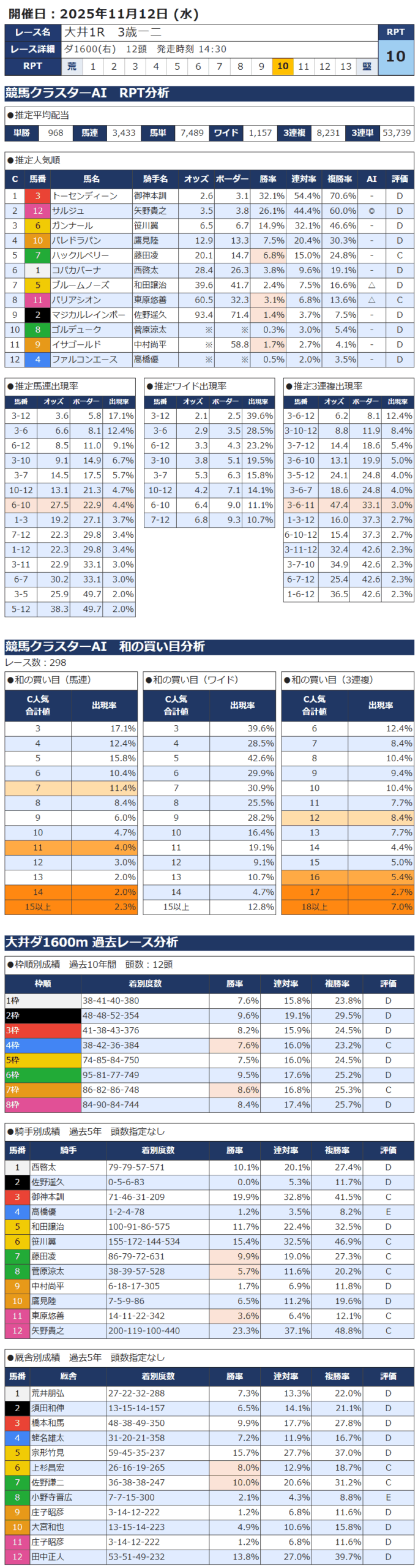 11月12日 南関競馬 大井