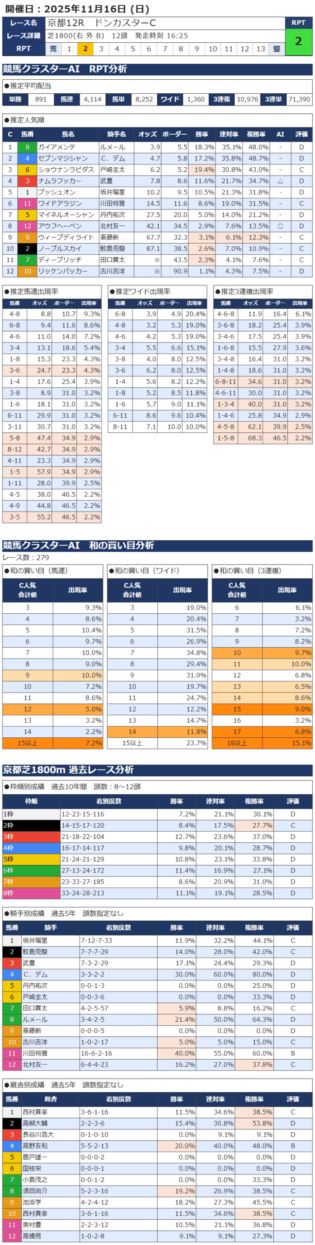 本日の無料・有料AI予想 レース情報