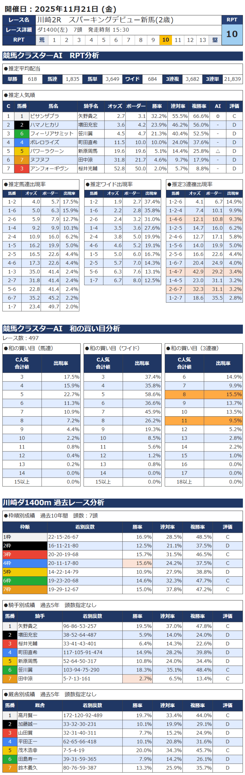 本日の無料・有料AI予想 レース情報