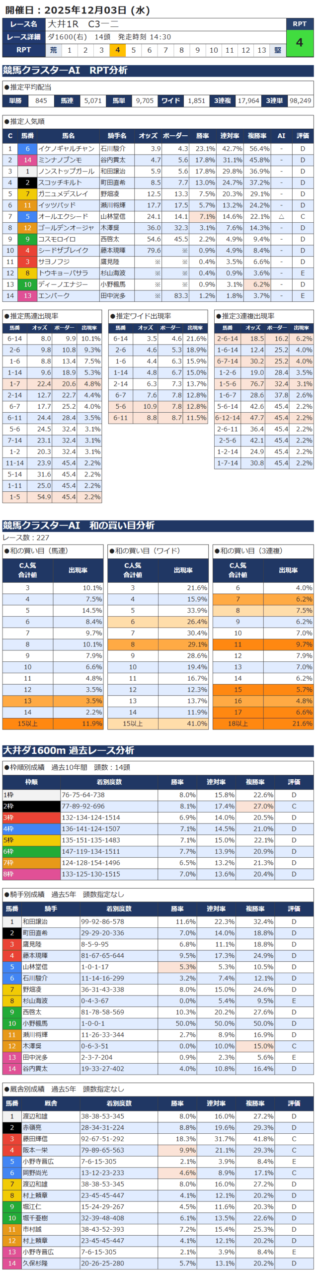 本日の無料・有料AI予想 レース情報