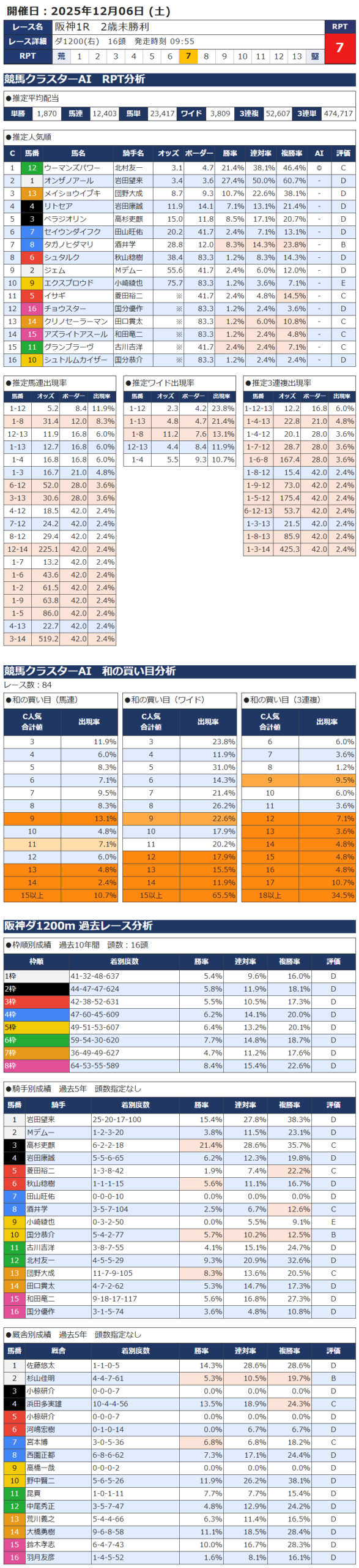 本日の無料・有料AI予想 レース情報
