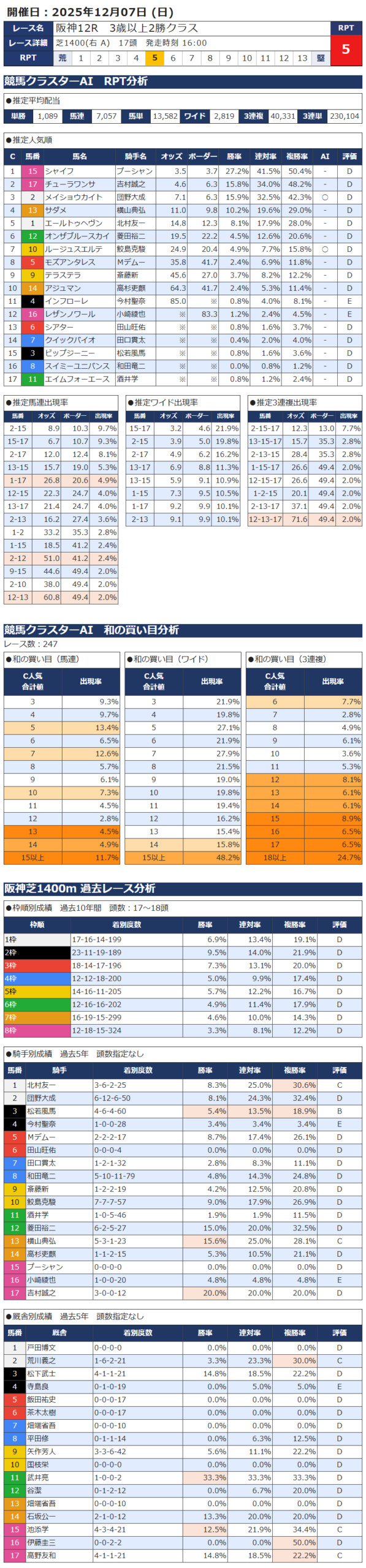 本日の無料・有料AI予想 レース情報