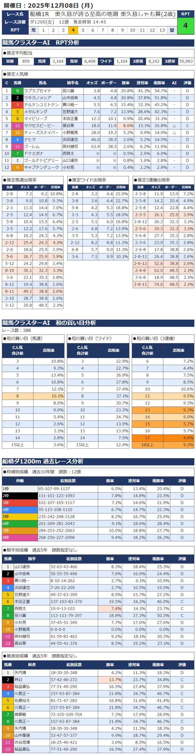 12月8日 南関競馬 船橋