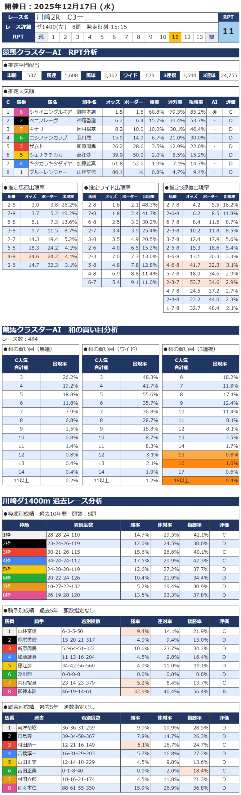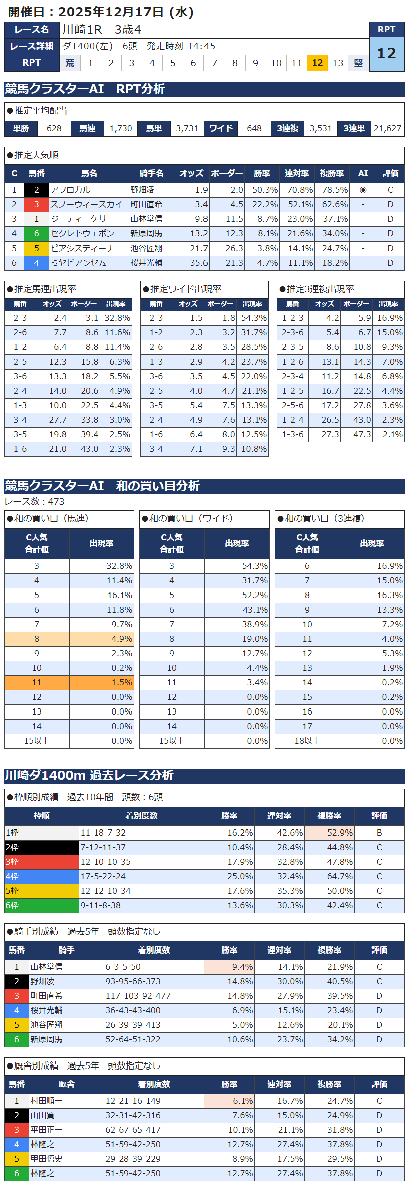 本日の無料・有料AI予想 レース情報