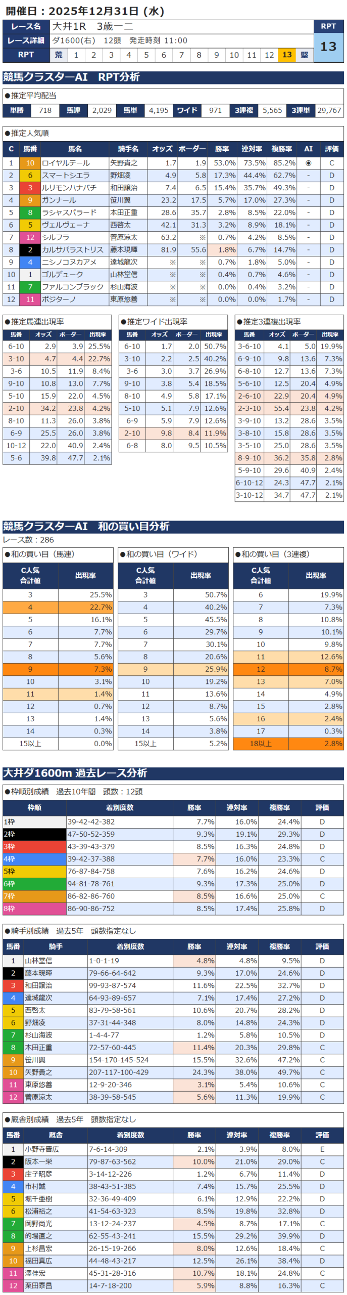 12月31日 南関競馬 大井