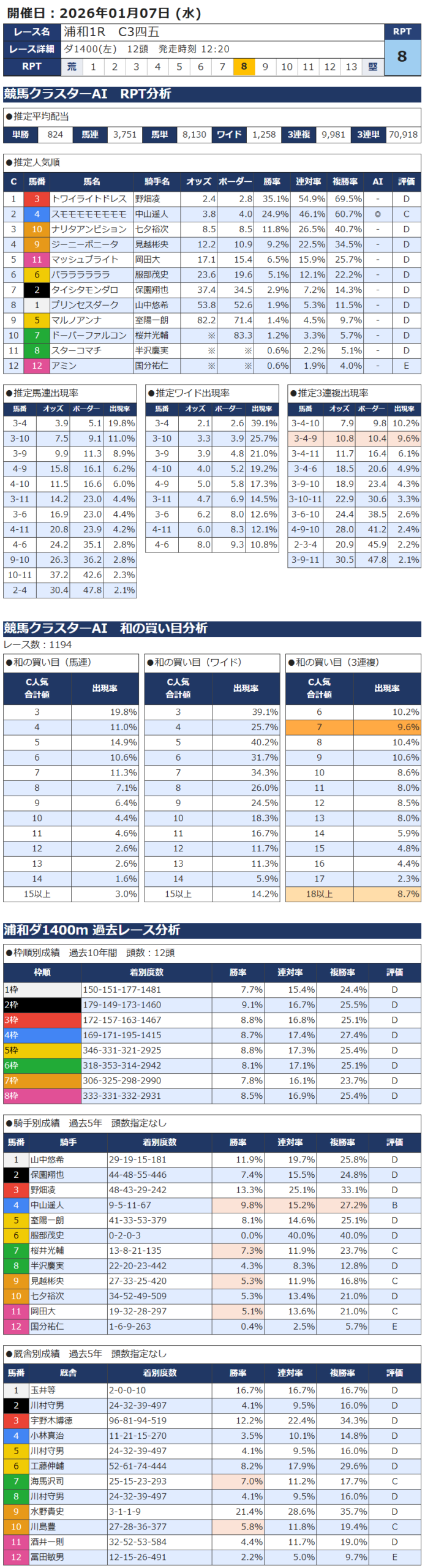 1月7日 南関競馬 浦和