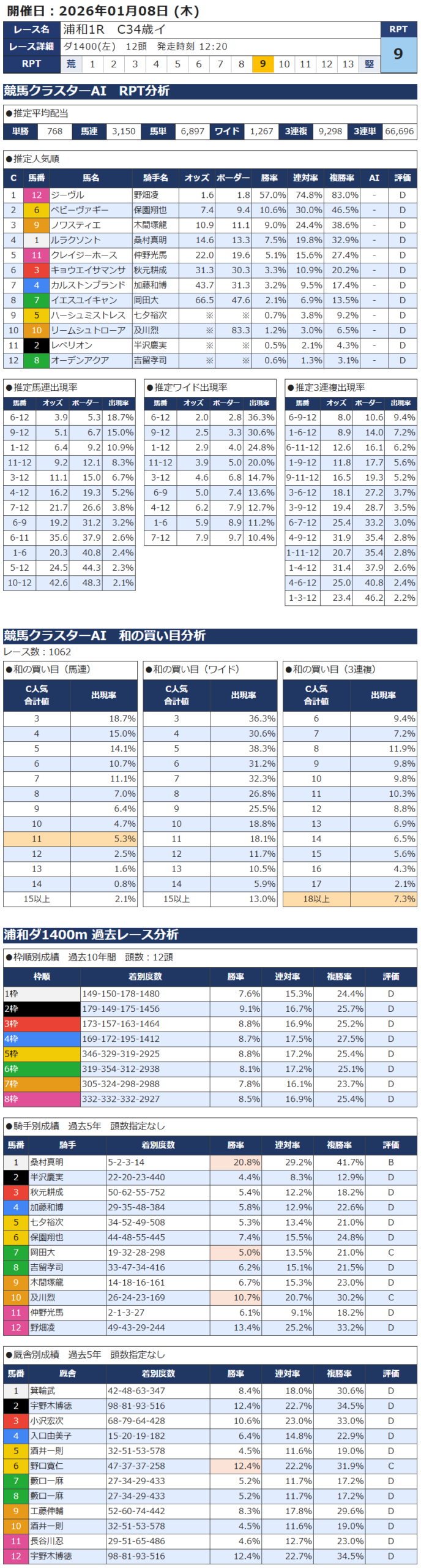 本日の無料・有料AI予想 レース情報