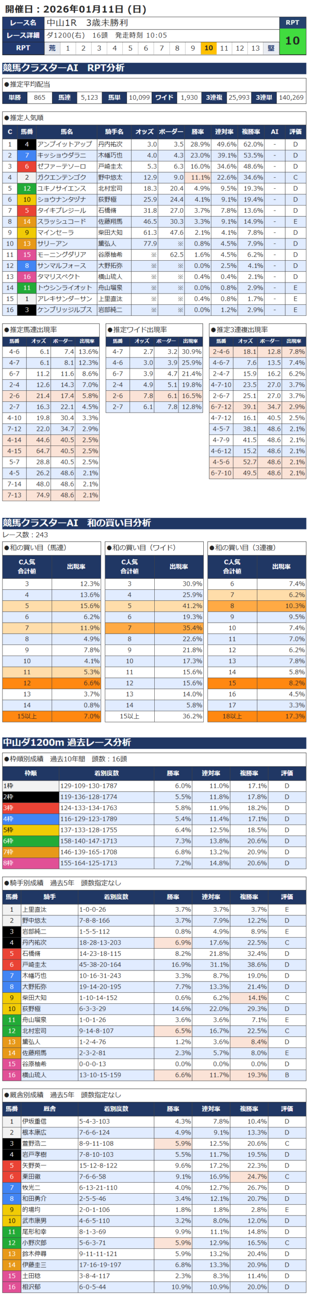 本日の無料・有料AI予想 レース情報