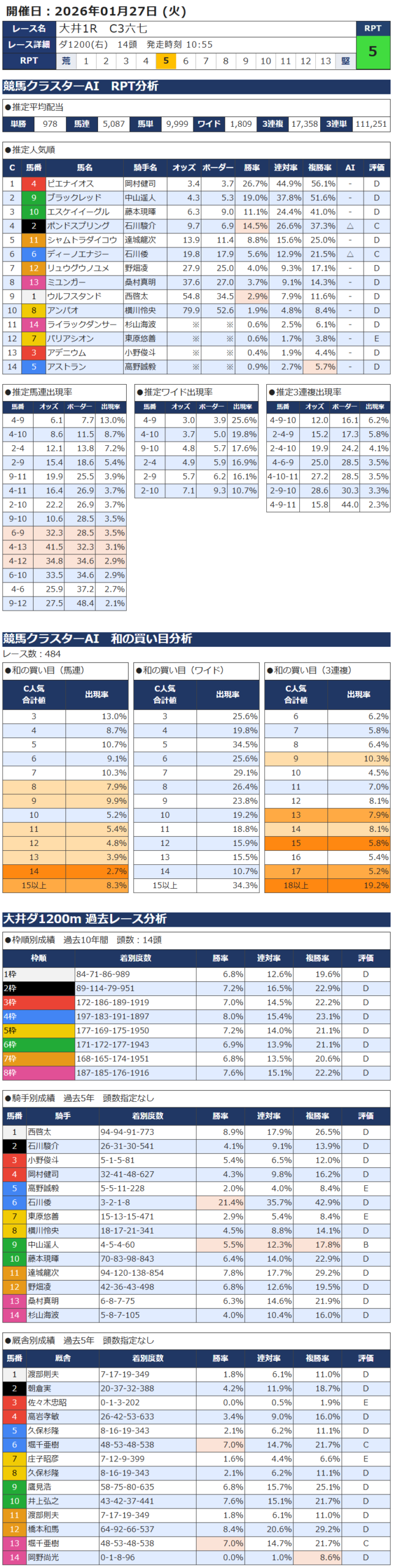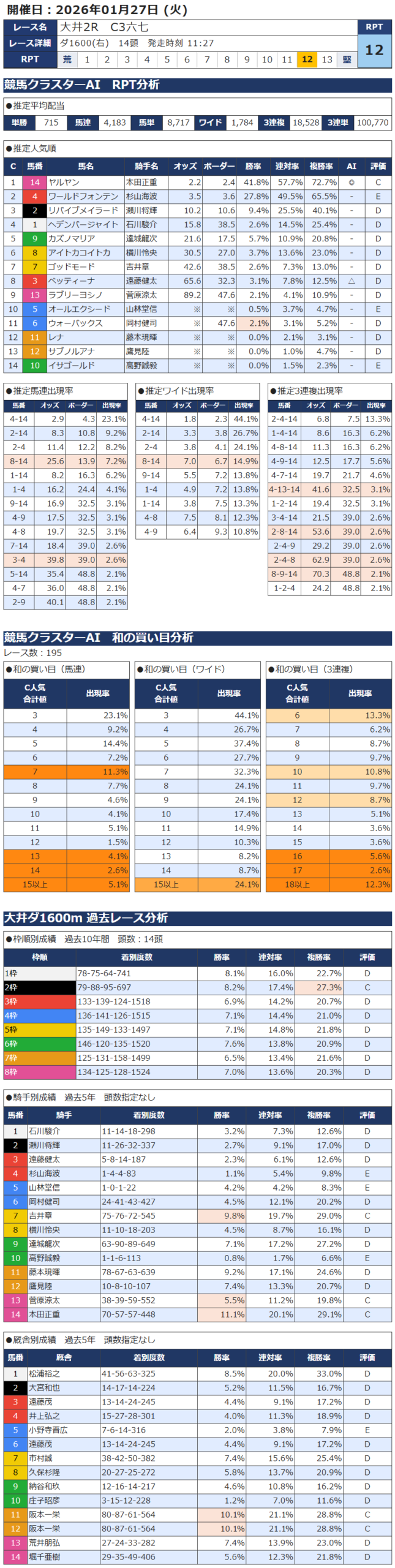 本日の無料・有料AI予想 レース情報