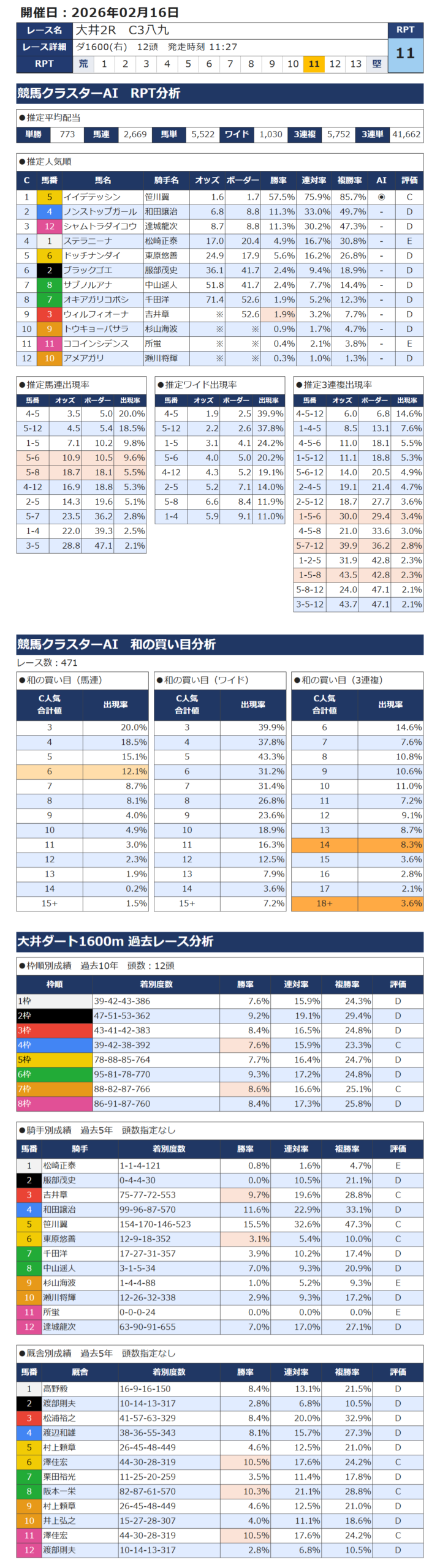 2月16日 南関競馬 大井