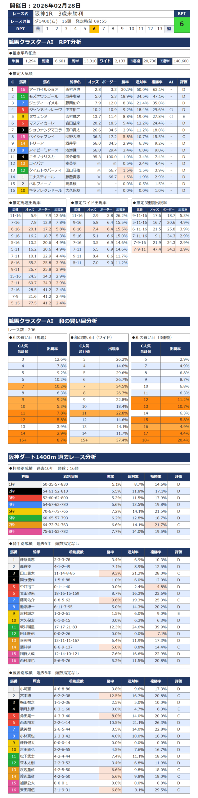 本日の無料・有料AI予想 レース情報