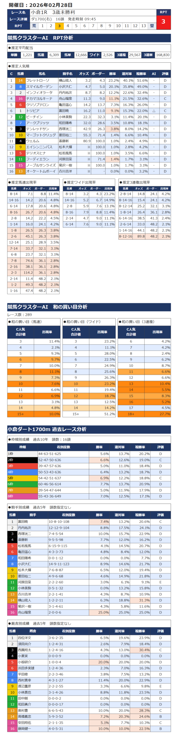 本日の無料・有料AI予想 レース情報