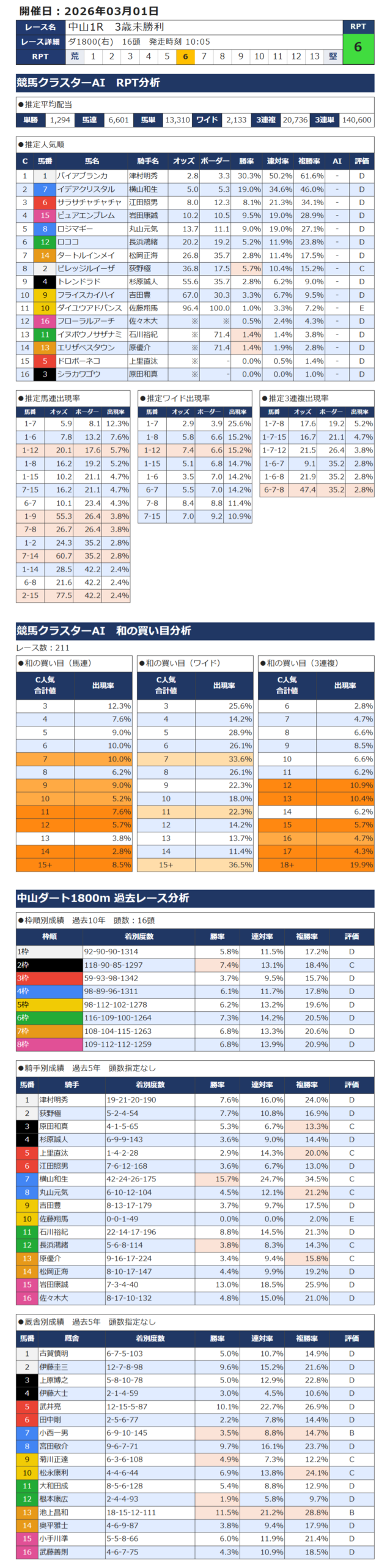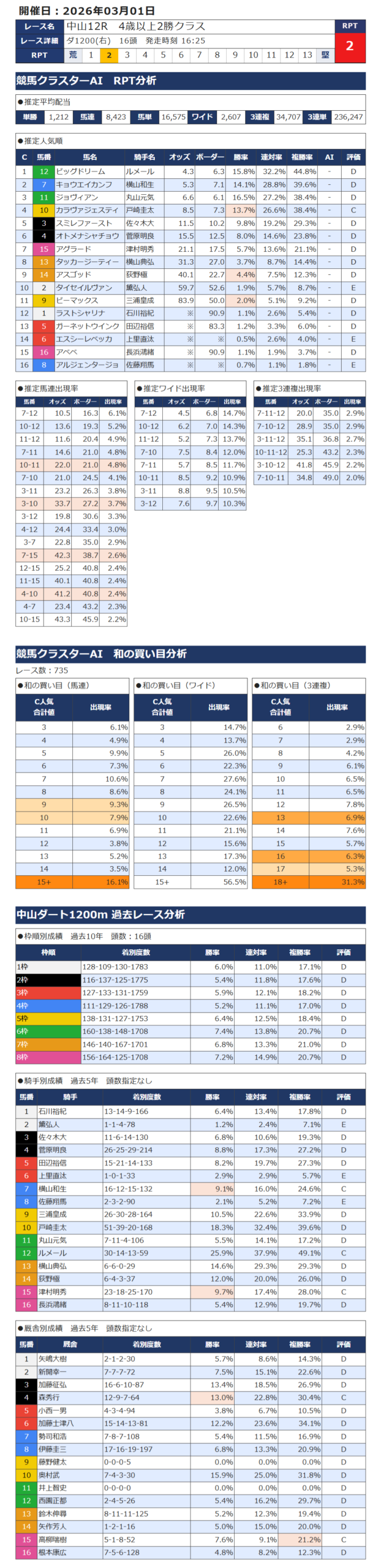 本日の無料・有料AI予想 レース情報