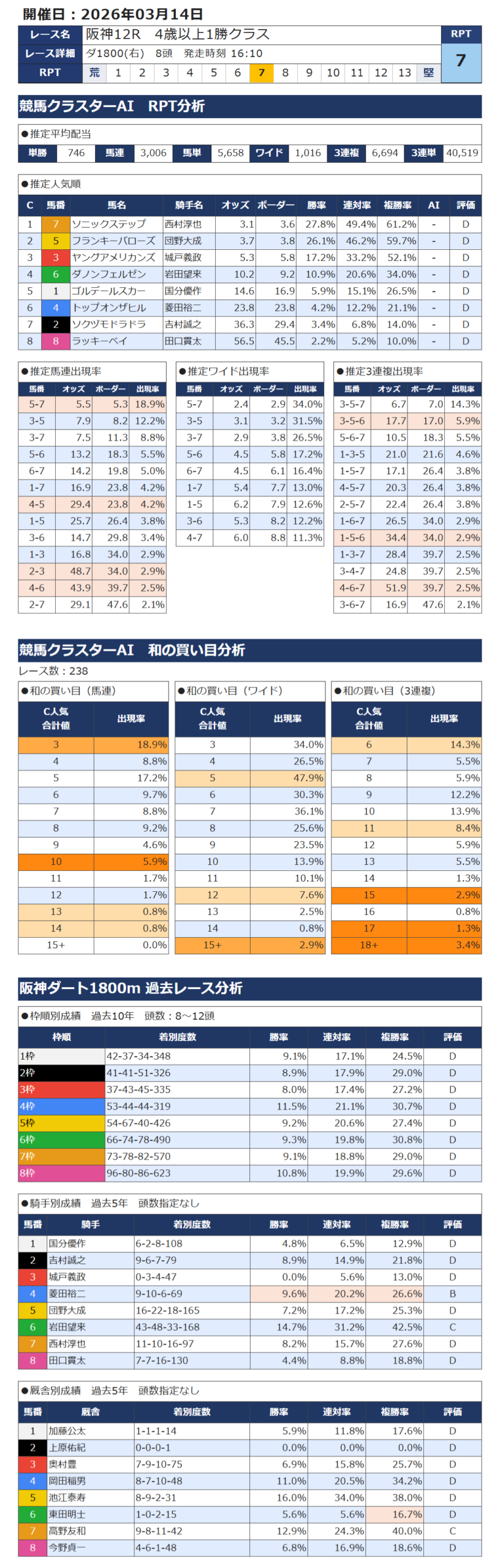 本日の無料・有料AI予想 レース情報