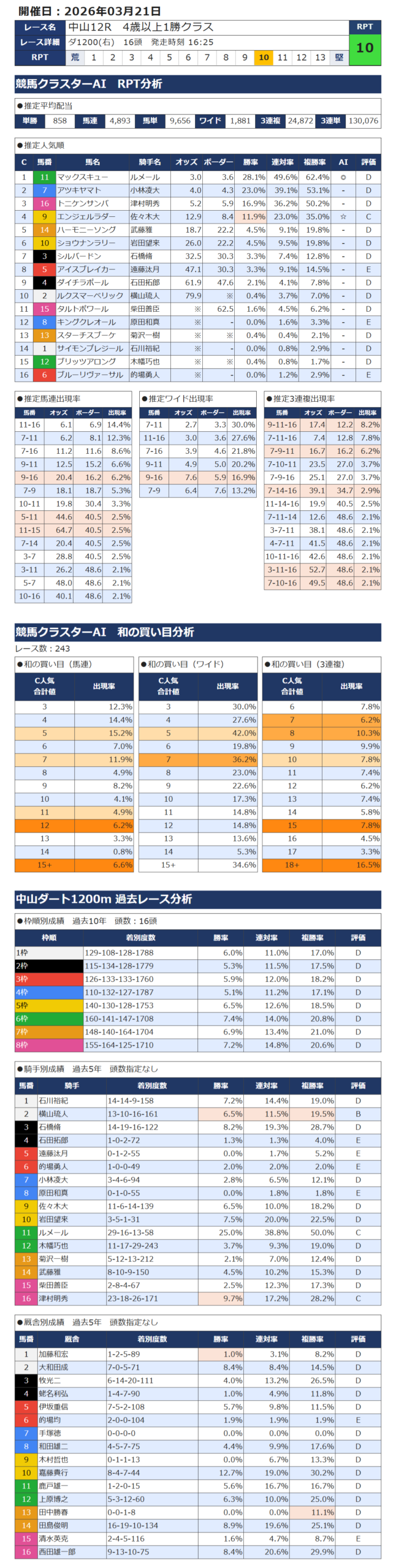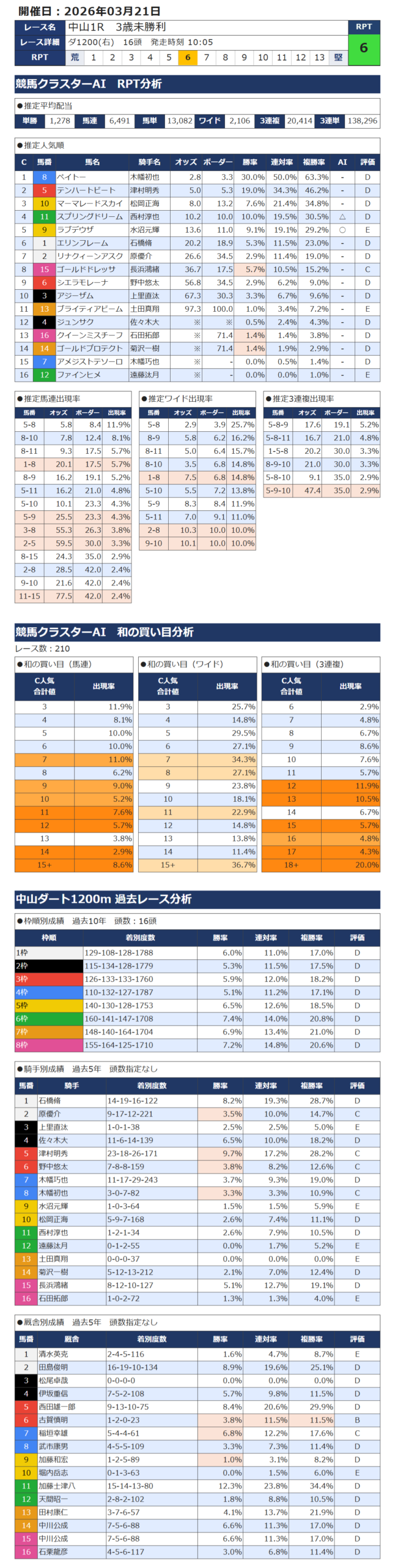 本日の無料・有料AI予想 レース情報