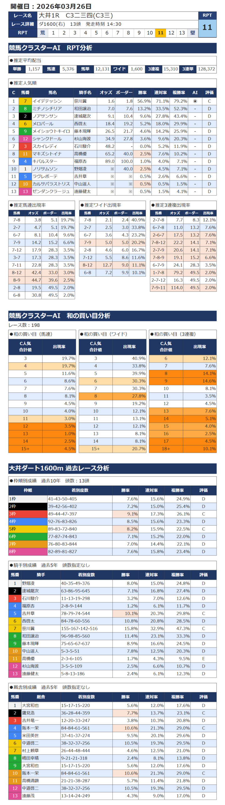本日の無料・有料AI予想 レース情報