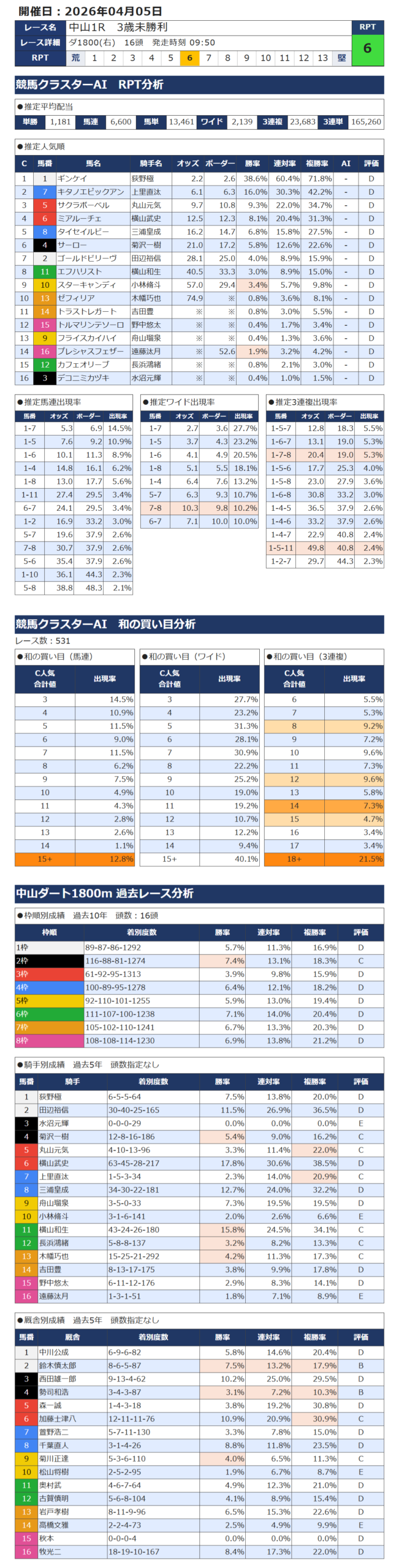 本日の無料・有料AI予想 レース情報