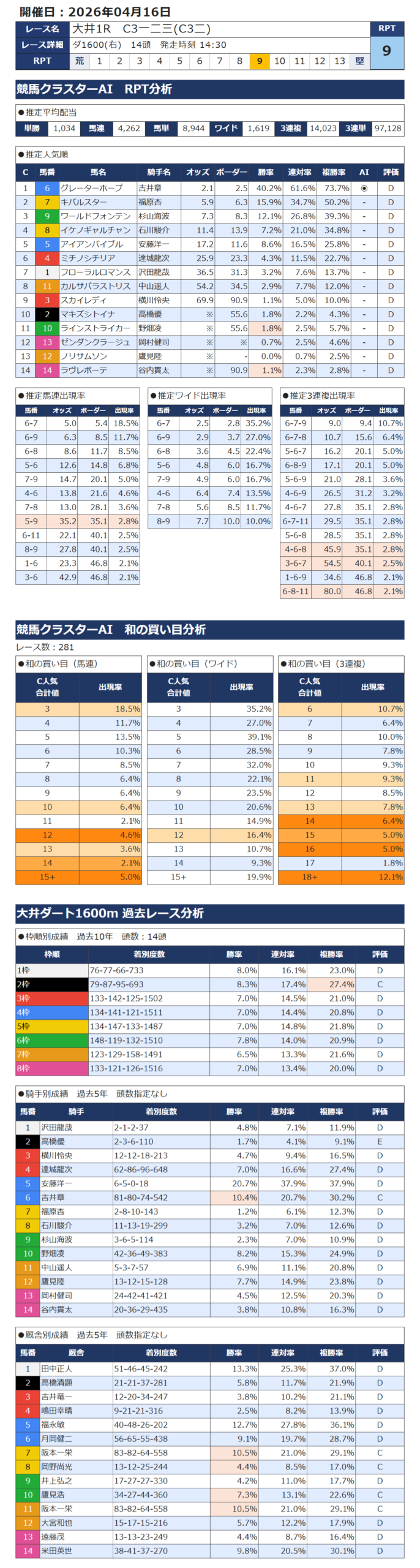 本日の無料・有料AI予想 レース情報