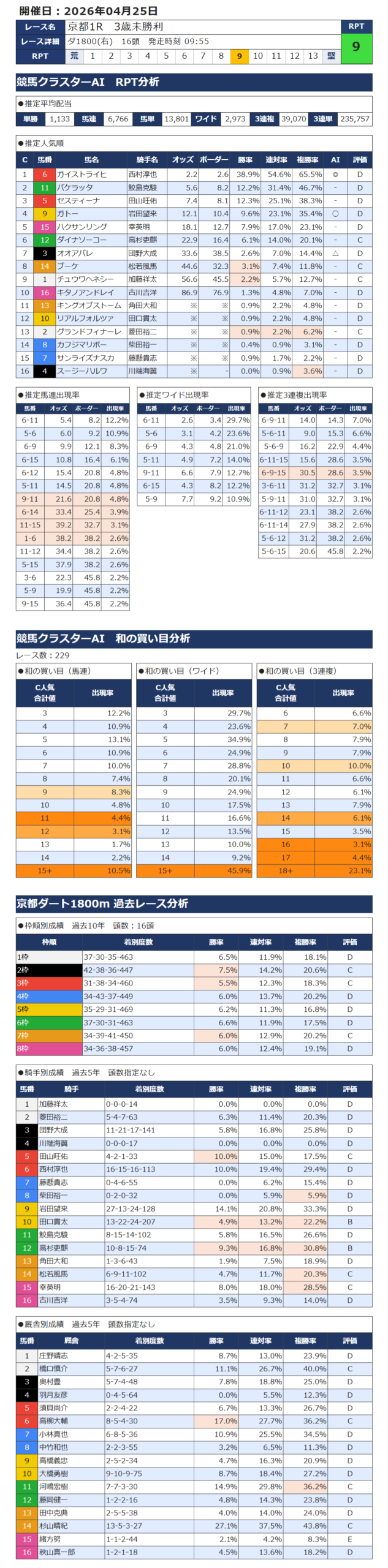 本日の無料・有料AI予想 レース情報